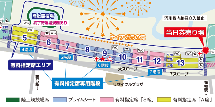 そのため、ゆったり花火を楽しみたい方には「有料観覧席チケット」の利用がおすすめです。