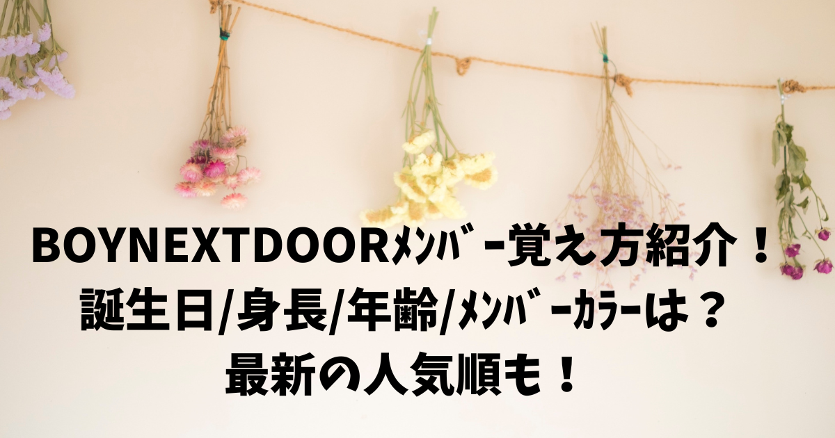 さて今回はそんな人気急上昇中の『BOYNEXTDOOR(ボーイネクストドア)』メンバーの覚え方紹介と、誕生日/身長/年齢/メンバーカラーも調査します。2026年最新の人気順も調査しますのでお役に立てたら幸いです。
