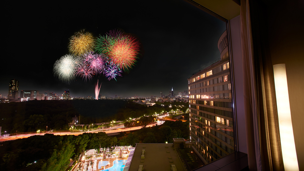 スイートルームで涼みながらディナーと共に花火を楽しめるプラン等 神宮外苑花火大会を観賞するステイプランがあります。