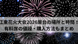 江東花火大会に行く場合は、次のポイントを覚えておくと安心です。