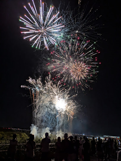 江戸川の河川敷にある広い公園で、花火大会のメイン会場となっています。
