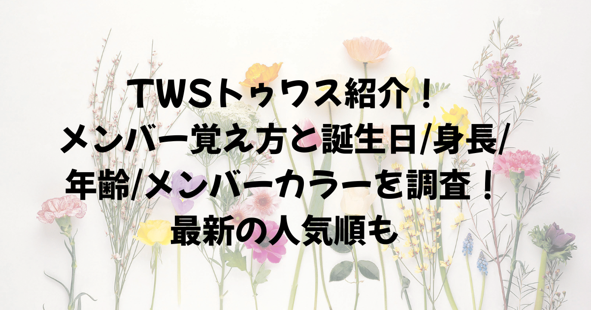 今回は『TWS(トゥアス)』メンバーの覚え方紹介と、誕生日/身長/年齢/メンバーカラーも調査しました。2026年最新の人気順も調査しましたがいかがでしたでしょうか!
